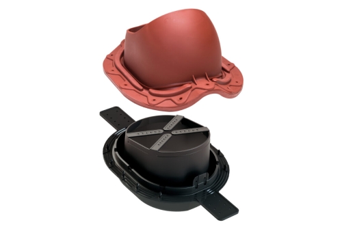MUOTOKATE 2K проходной элемент для металлочерепицы с профилем Monterrey (ширина волны ≈ 183,3 мм, длина профиля min 350 мм, высота профиля ≈ 39 мм). В комплект входит двухкомпонентный 2K-уплотнитель гидрозатвора, гарантирующий полную герметичность прохода через гидрозащитную пленку.