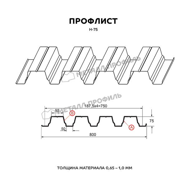 Профлист МЕТАЛЛ ПРОФИЛЬ Н-75x750-B (ПЭ-01-3020-0,7) часто используется для обустройства профилированного листа. Изначально он представляет собой стальной оцинкованный лист с покрытием. Толщина металла с цинковым и декоративно-защитным слоем — 0.7 мм. Проходя процедуру холодного проката, сталь приобретает рисунок из ритмичных волн. Жёсткость такого листа гораздо выше плоского.
