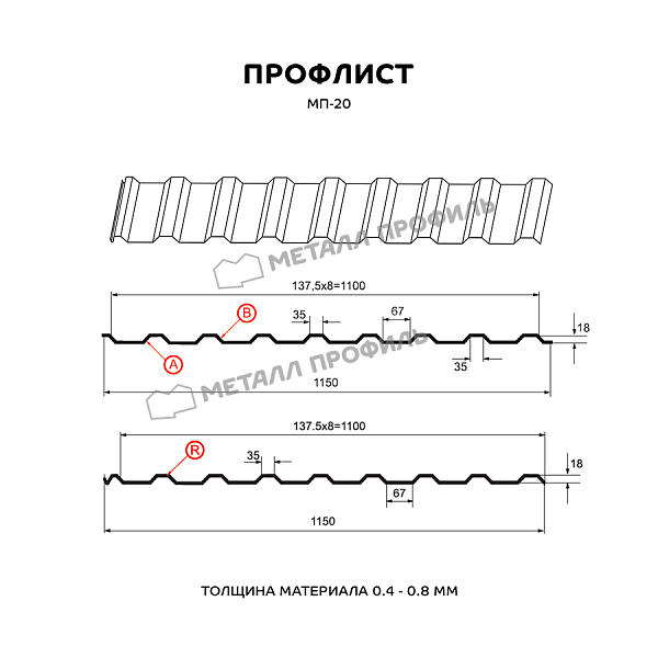 Описание товара: "Профлист МП-20х1100-A (ПЭ_МА_Д-01-8017-0,4)"