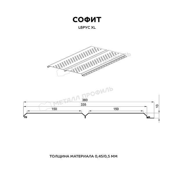 Софит Металл Профиль перфор. Lбрус-XL-14х335 NormanMP (ПЭ-01-1014-0.5)